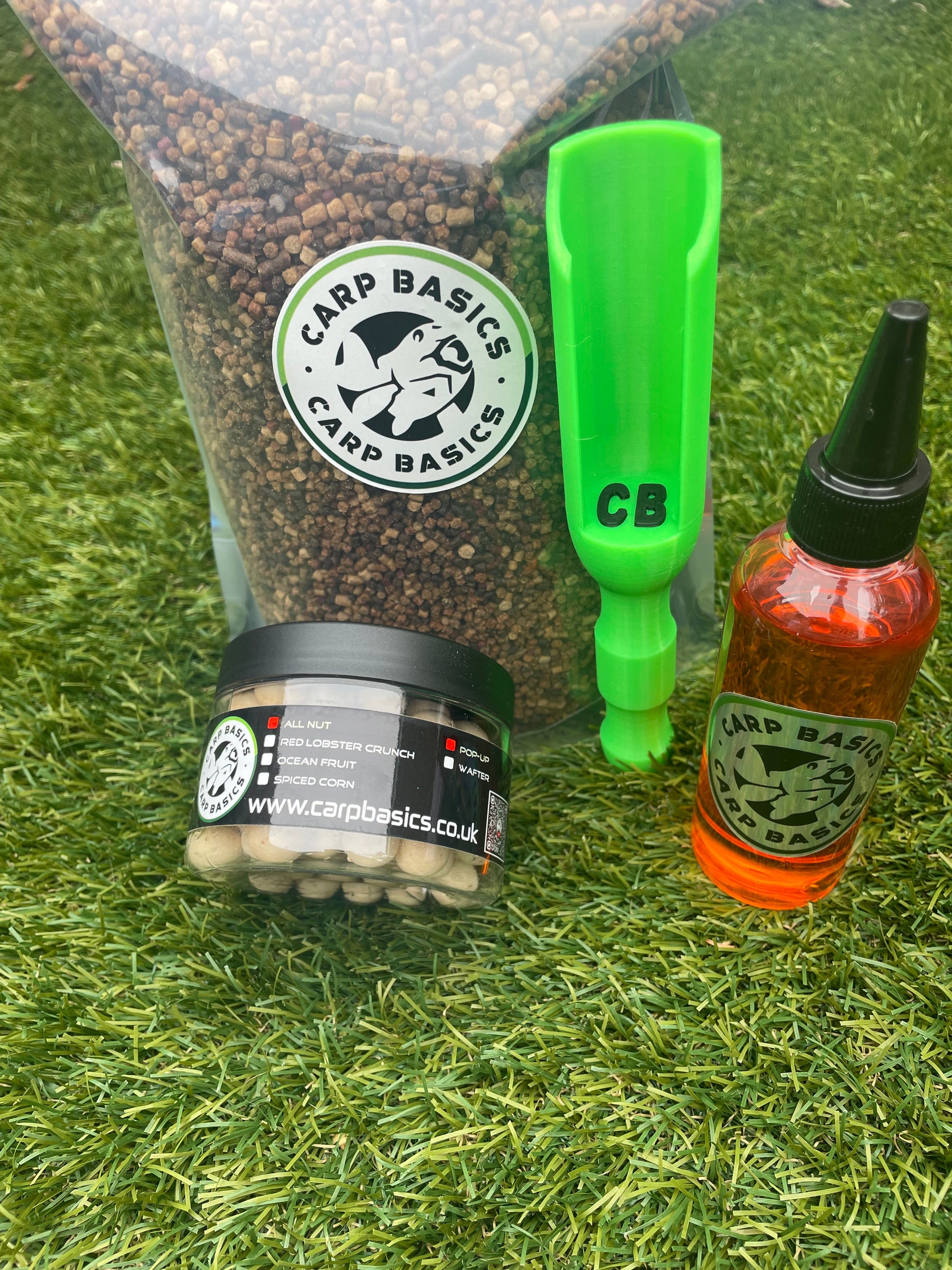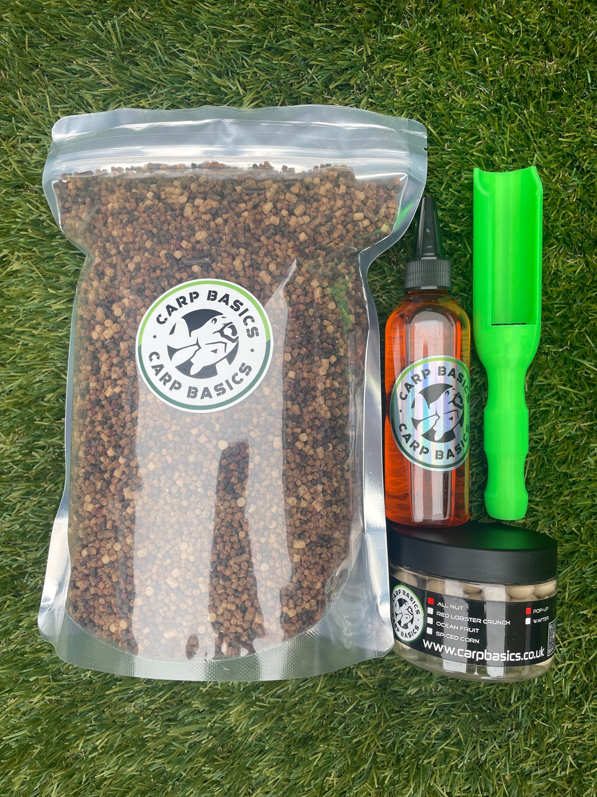 Our new mini mix pellet bag with hookbait our new test bag juice a hookbait pot and a limited edition bait spoon.